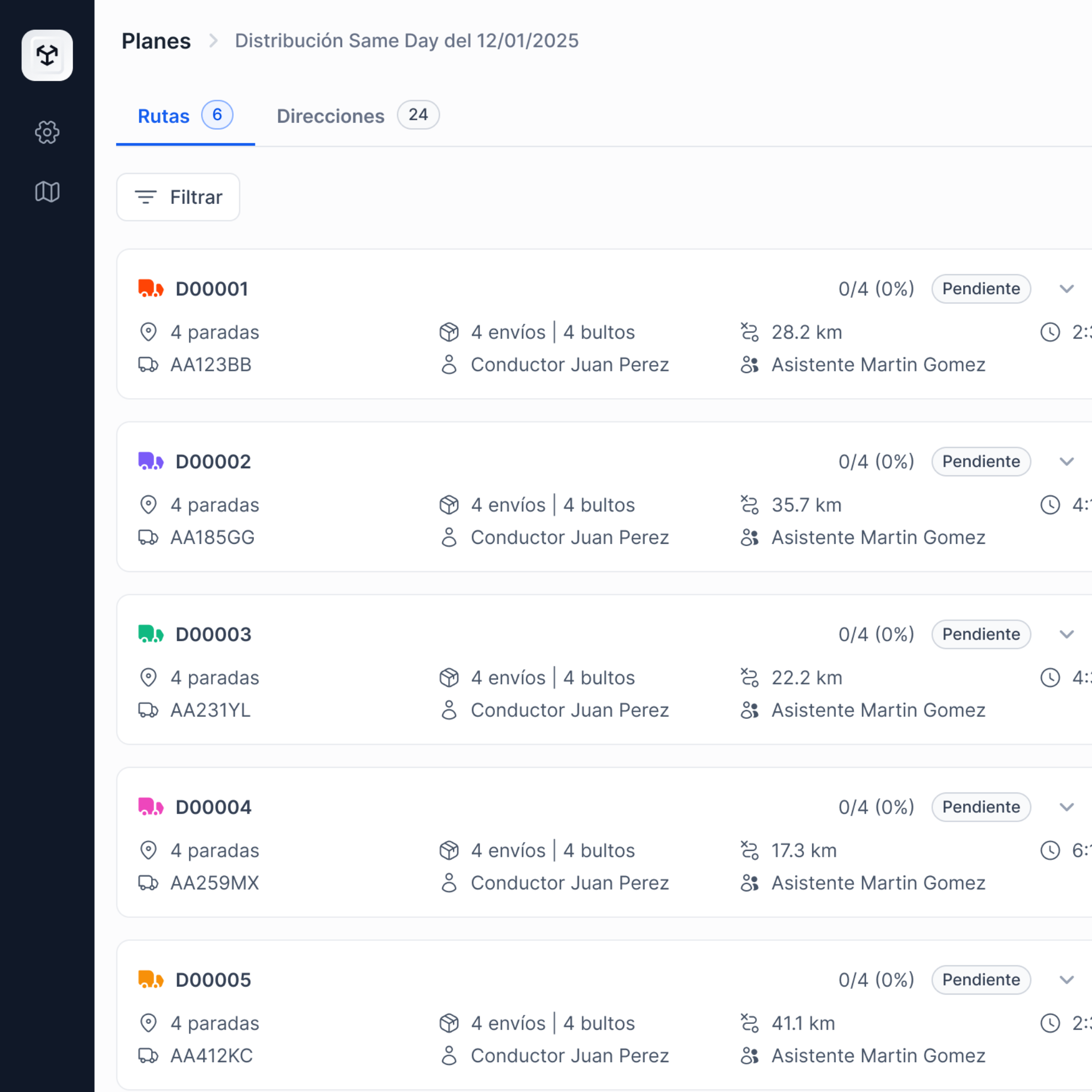 - Seguimiento de envíos pendientes, en colecta, en distribución, entregados, y excepciones